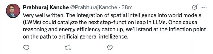 哲学家维特根斯坦曾写道:“语言的边界就是我世界的边界”。我不是哲学家,但我知道,对AI而言,世界不止于语言。空间智能代表着超越语言的前沿。